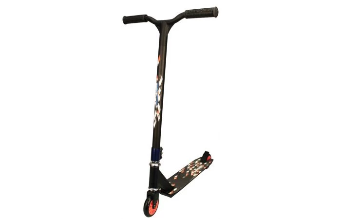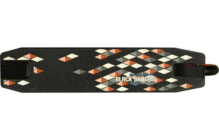 Rule the skatepark op je Black Dragon Road Rage stuntstep! De Black Dragon Stunt Scooter heeft een extra sterke rechthoekige frameconstructie met triple stangklem en is gemaakt van aluminium en heavy duty staal. De ultrasterke en uitermate lichte constructie maakt het oefenen van alle mogelijke trucs heel plezierig. Deze stuntstep vangt alle krachten op terwijl jij je uitslooft in het skatepark. De rubberen handgrepen zijn aan de uiteinden voorzien van stootbescherming en er is een stevige, metalen voetrem op het achterwiel. De step is niet opvouwbaar.