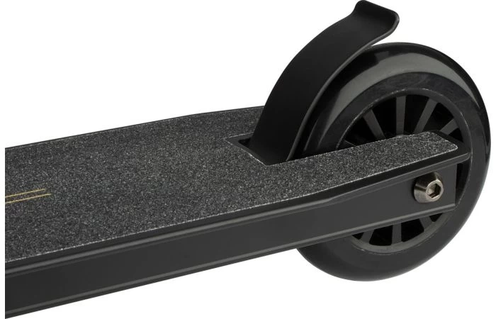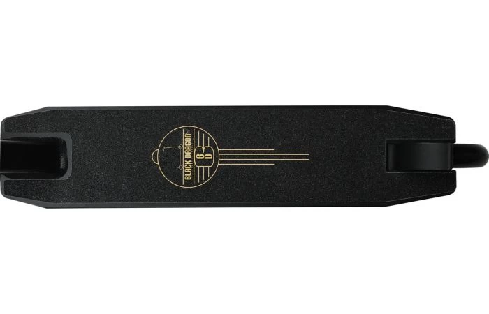 Rule the skatepark op je Black Dragon Vert Racer stuntstep! Deze Black Dragon Stunt Scooter heeft een extra sterke rechthoekige frameconstructie met triple stangklem en is gemaakt van aluminium en heavy duty staal. De ultrasterke en uitermate lichte constructie maakt het oefenen van alle mogelijke trucs heel plezierig. Deze stuntstep vangt alle krachten op terwijl jij je uitslooft in het skatepark. De rubberen handgrepen zijn aan de uiteinden voorzien van stootbescherming en er is een stevige, metalen voetrem op het achterwiel. De step is niet opvouwbaar, maar met de metallic bronzen detailelementen gecombineerd met het zwarte frame zal je zeker opvallen!