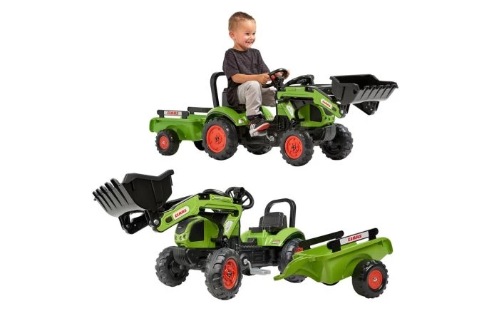 Voel je als een heuse boer en trek er op uit met deze coole Claas Arion 410 tractor van Falk! Deze traptractor wordt geleverd inclusief aanhanger. Vervoer wat jij maar wilt! Hij is gemaakt van stevig kunststof en heeft slijtvaste wielen.