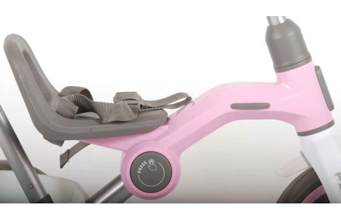 De vouwbare QPlay Tenco driewieler is de perfecte driewieler om mee te nemen op avontuur. Met behulp van de drukknop onder het zadel is de driewieler gemakkelijk in te vouwen, waardoor hij zich prima leent om meegenomen te worden. Daarnaast heeft de QPlay Tenco een mogelijkheid tot vrijloop en een verstel-/ afneembare duwstang waarmee u uw kindje en de driewieler kunt begeleiden. Ook heeft de driewieler onder het zadel een bak om alle belangrijke spulletjes in mee te nemen. Hij is geschikt voor kindjes tussen de 2 en 6 jaar oud met een maximaal gewicht van 25 kilogram.Â