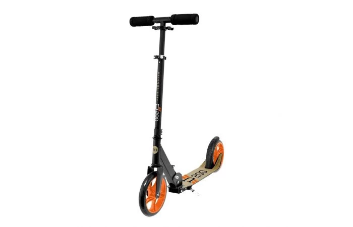 Street Surfing Urban 200 step, met 200 mm wielen. Deze step is voorzien van een eenvoudig inklapmechanisme om hem overal mee naartoe te nemen en de verbluffende graphics te laten zien. Dit is de U 200, in District 0 uitvoering in de kleurencombinatie oranje, zwart en goudbruin.