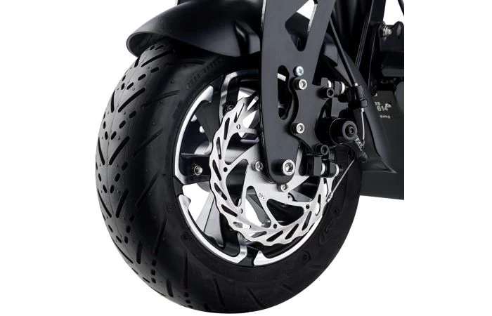 Met deze elektrische steps kun je op elke ondergrond zonder problemen rijden. De banden hebben diepe groeven die helpen tegen het glijden of vast raken. Daarbij zijn het lucht-gevulde banden die nog extra schokken opvangen. De geveerde vork helpt hier natuurlijk prima bij. Dit is één van de beste veringen op de markt binnen de E-steps. Zowel voor- als achteraan heb je verlichting. Deze verlichting is krachtig genoeg om ver vooruit te kijken in het donker. Met 800 Watt vermogen kun je iedere hoogte nemen. De schokbrekers voor- en achteraan zorgen ook nog voor een aangenaam rijplezier. De snelheid ligt op 40 km/u en de batterij houdt het zo’n 80 km vol. Goed voor iets minder dan twee uur rijplezier!