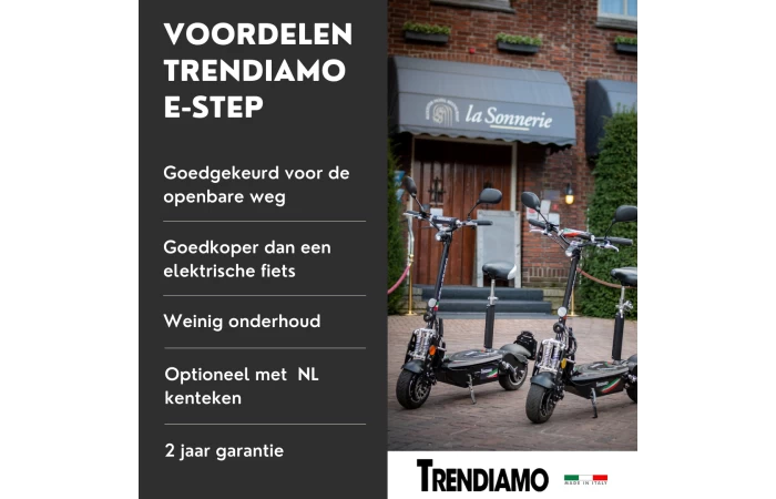 De Trendiamo Endurance e-step haalt snelheden van wel 45km/h. Om deze snelheden te mogen rijden op een e-step moet u wel een geel kenteken toevoegen om op de openbare weg te mogen rijden. Verder heeft deze e-step voor- en achtervering, schijfremmen, aangepaste luchtbanden en extra isolatie rondom de batterij. Met de E-steps van Trendiamo koop je een voertuig dat het vele jaren vol moet houden.Â