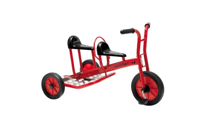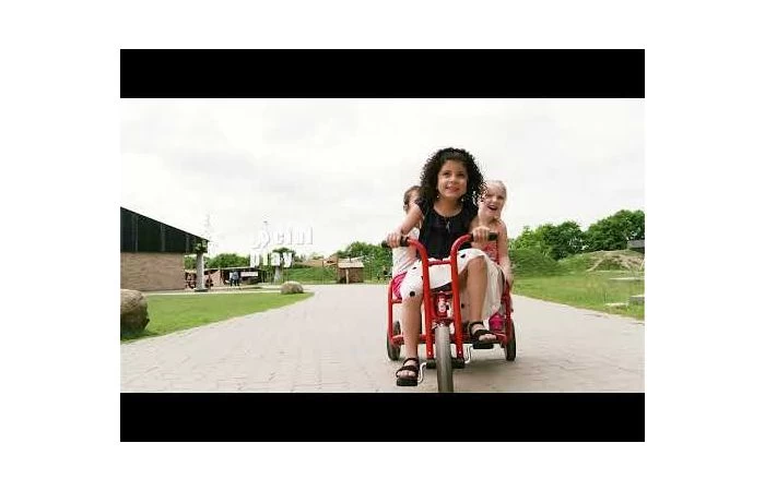 Race samen met je vriendje over het plein met deze oerdegelijke duodriewieler. De duodriewieler is robuust, veilig en duurzaam. Frame van buizenstaal, zonder scherpe hoeken of kanten. Achter deze driewieler kan een aanhanger gekoppeld worden met de veiligheidskoppeling.