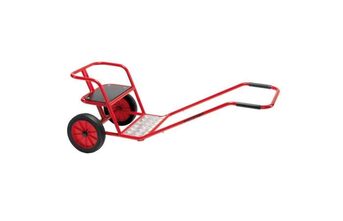 Pret voor twee, één kind is passagier, de ander trekt de riksha. Met veiligheidsrail en een klein 3e wiel om achterover kiepen te voorkomen. Daarnaast heeft de riksha ook een antislip aluminium voetenbord.