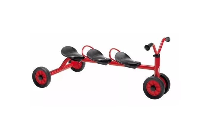 Deze trio loop vierwieler met dubbel voorwiel biedt veiligheid en helpt bij het ontwikkelen van het evenwicht. Deze trio loopfiets is geschikt voor de allereerste rij- en stuurervaringen van het kind. Doordat deze loopfiets ook plaats biedt voor 2 passagiers past hij ook perfect in het rollenspel.